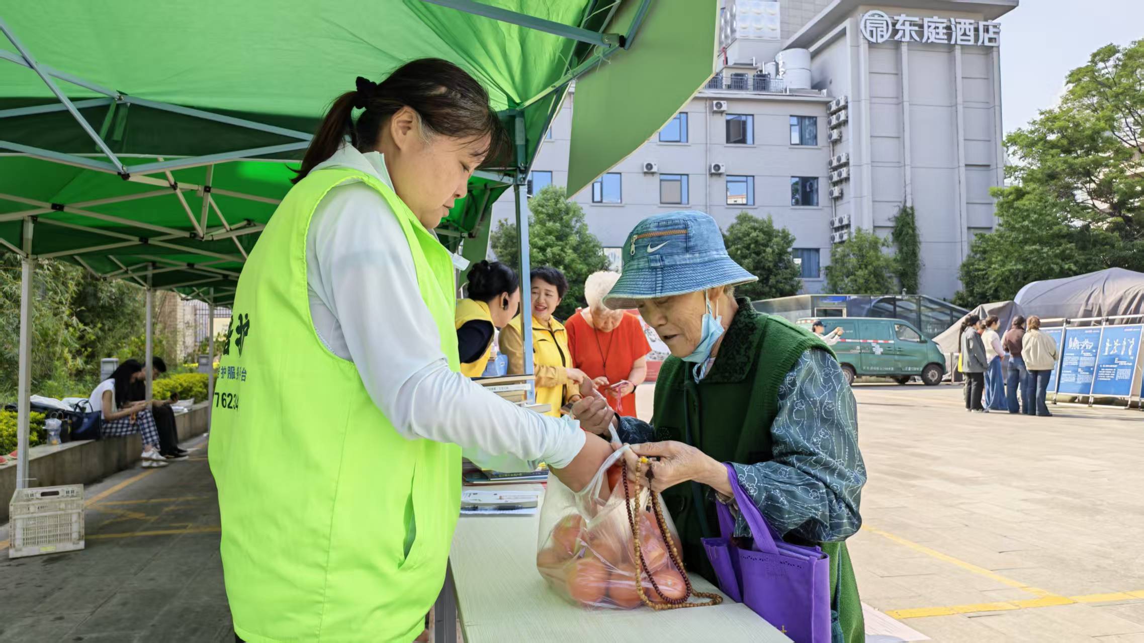 与常见阅读活动不同的是,现场“以书换蔬”摊位前排起了长队,居民们拎着闲置书籍,换回一袋袋新鲜蔬菜。