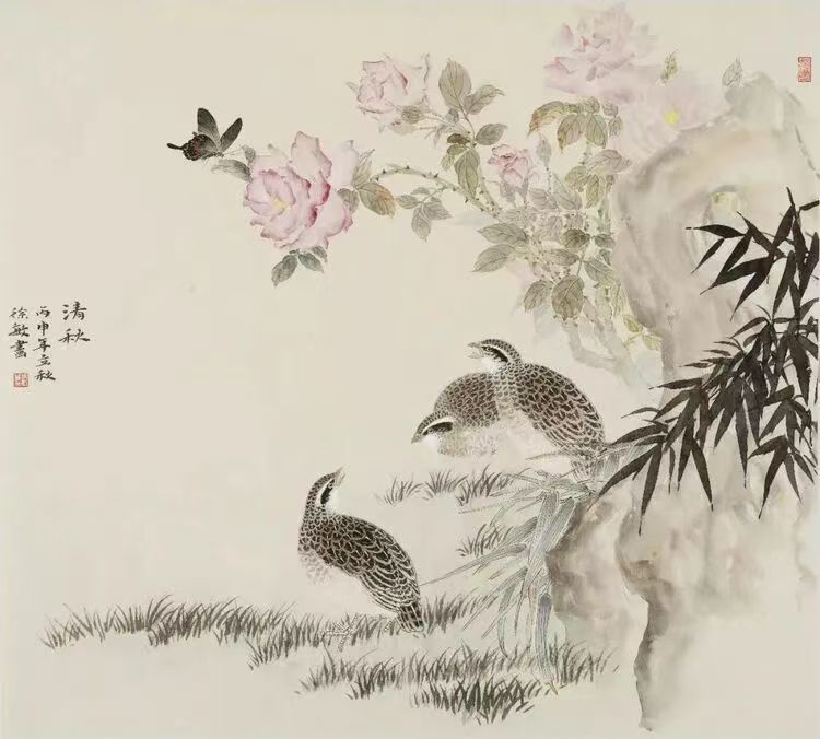 徐敏的艺术成就既源于专业深耕的技法积淀,更来自心境修为的精神滋养,笔下每一幅花鸟皆以淡彩藏深意、以静景传真情,既为当代工笔花鸟画注入清雅新风,也为传统花鸟题材的当代表达提供了可鉴范式。她的创作告诉我们,工笔花鸟不必以浓艳争辉,不必以繁复显技,以清淡守本心,以雅韵传真情,便能让笔墨穿越时光,抵达观者内心,这正是其作品能深深打动人心的关键所在。