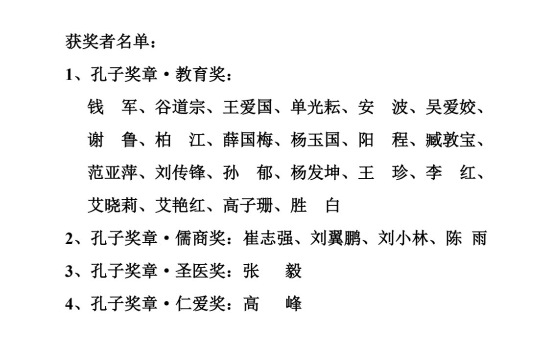 圣医奖获得者张毅“医行天下,望闻问切治心治身”,传承非物质文化遗产,以仁心仁术守护众生健康;仁爱奖获得者高峰“高情致远,共铸残疾尚古华章”,以无私大爱助力残疾人与全社会共享阳光,他们的善行义举完美体现了孔子“仁者爱人”思想的时代光芒与社会温度。