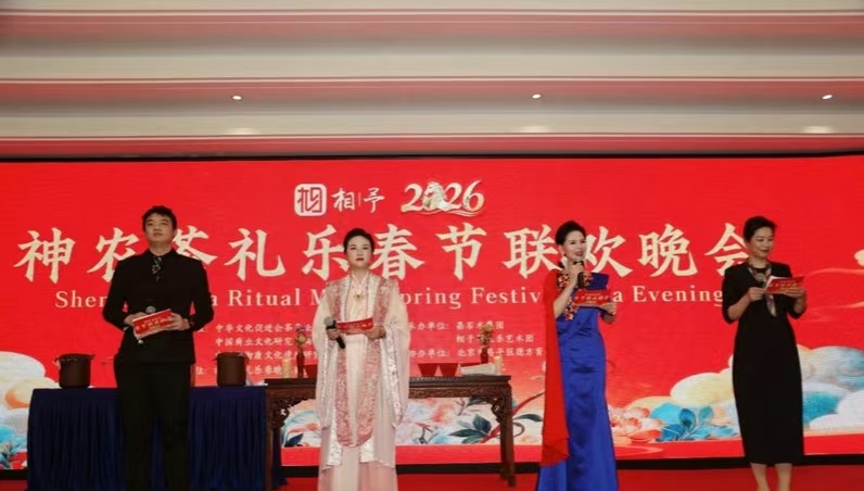 由中华文化促进会茶产业工作委员会、中国商业文化研究会商业品牌工作委员会、中国非物质文化遗产研究网联合指导,神农茶礼乐春晚组委会主办,嘉石木集团、相予茶礼乐艺术团承办,北京市昌平区德方育华学校、莫说茶文化协办的2026第二届神农茶礼乐春节联欢晚会,在北京朝阳区中传国际交流中心盛大启幕。全国各省代表、各行各业精英与海内外500余位嘉宾齐聚一堂,以“两片树叶一把土”的东方智慧为引——茶叶、桑叶与陶瓷茶器交织,18种风格茶席美学现场竞艳,席主亲自主泡、品茶赏春晚的沉浸式体验拉满氛围,茶美学空间展示、汉服打卡、太极展演、封茶大典相映成趣,马年茶春晚吉祥文创惊艳亮相,茶做红包千福齐发,将春节喜庆推向高潮。众人在茶香礼乐中践行“因茶而聚,因乐、因礼、在一起而美好”的初心,奏响“民族自信,天下大同”的新春乐章。