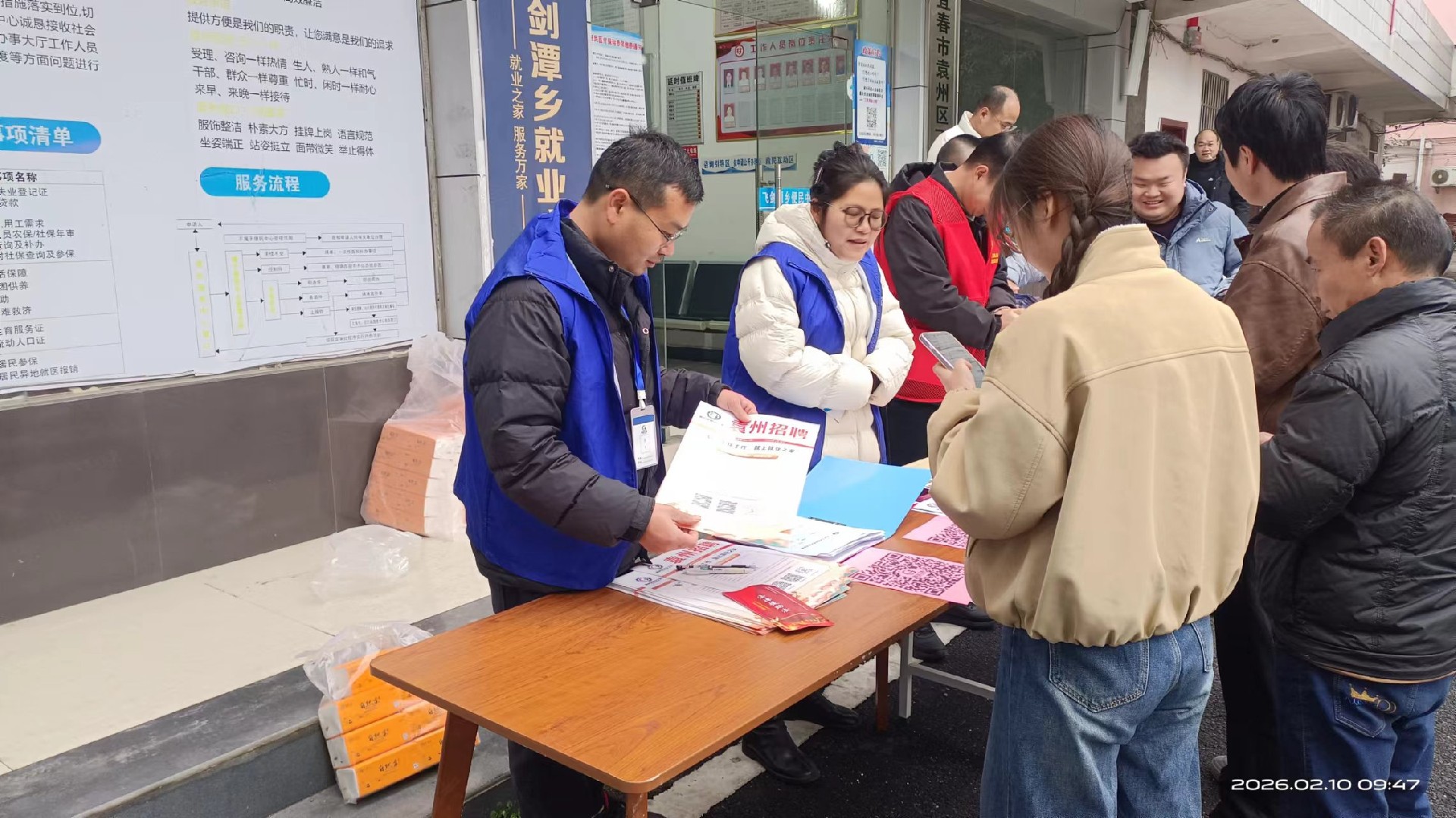 为扎实做好稳就业、保就业工作,精准对接企业用工与群众求职需求,2026年2月10日,恰逢北方小年,春节的气息渐浓,飞剑潭集市上人潮涌动。宜春市袁州区飞剑潭乡“5+2就业之家”成功举办线下招聘会暨就业创业政策宣传会,把岗位、政策与服务送到群众家门口,切实打通就业服务“最后一公里”。