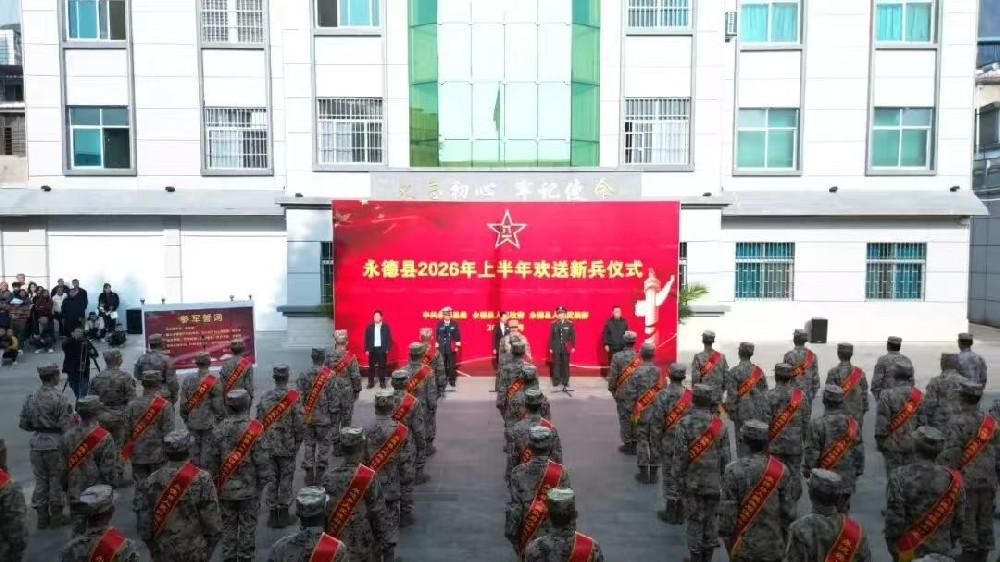 (云南频道记者张亚军  张语嫣报道)春风浩荡,壮志凌云;戎装在身,使命在肩。3月19日,临沧市永德县2026年上半年欢送新兵仪式在县人武部举行,现场军歌嘹亮,一批怀揣报国热忱的优秀青年身着崭新迷彩服、胸戴鲜艳光荣花,精神抖擞、意气风发,即将告别家乡、奔赴军营,开启保家卫国的军旅生涯。县委副书记那娜,县委常委、县人武部政委向鲲,县人武部部长许强,县征兵工作领导小组成员单位负责人及新兵家属齐聚现场共同见证新兵踏上强军报国新征程。